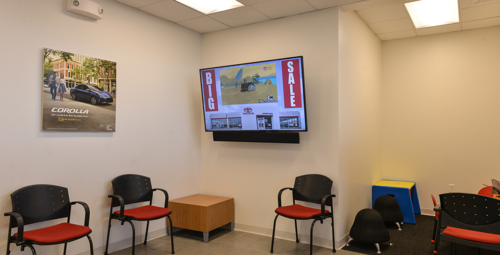 Because of this, we were happy to provide Johnston's Toyota a digital signage solution throughout the dealership. In places such as the waiting area a number of displays were installed that will broadcast select content. This will vary depending on their current needs, whether it’s to advertise promotions, special financing, services, and more. Select television stations also run, integrating static images with video.